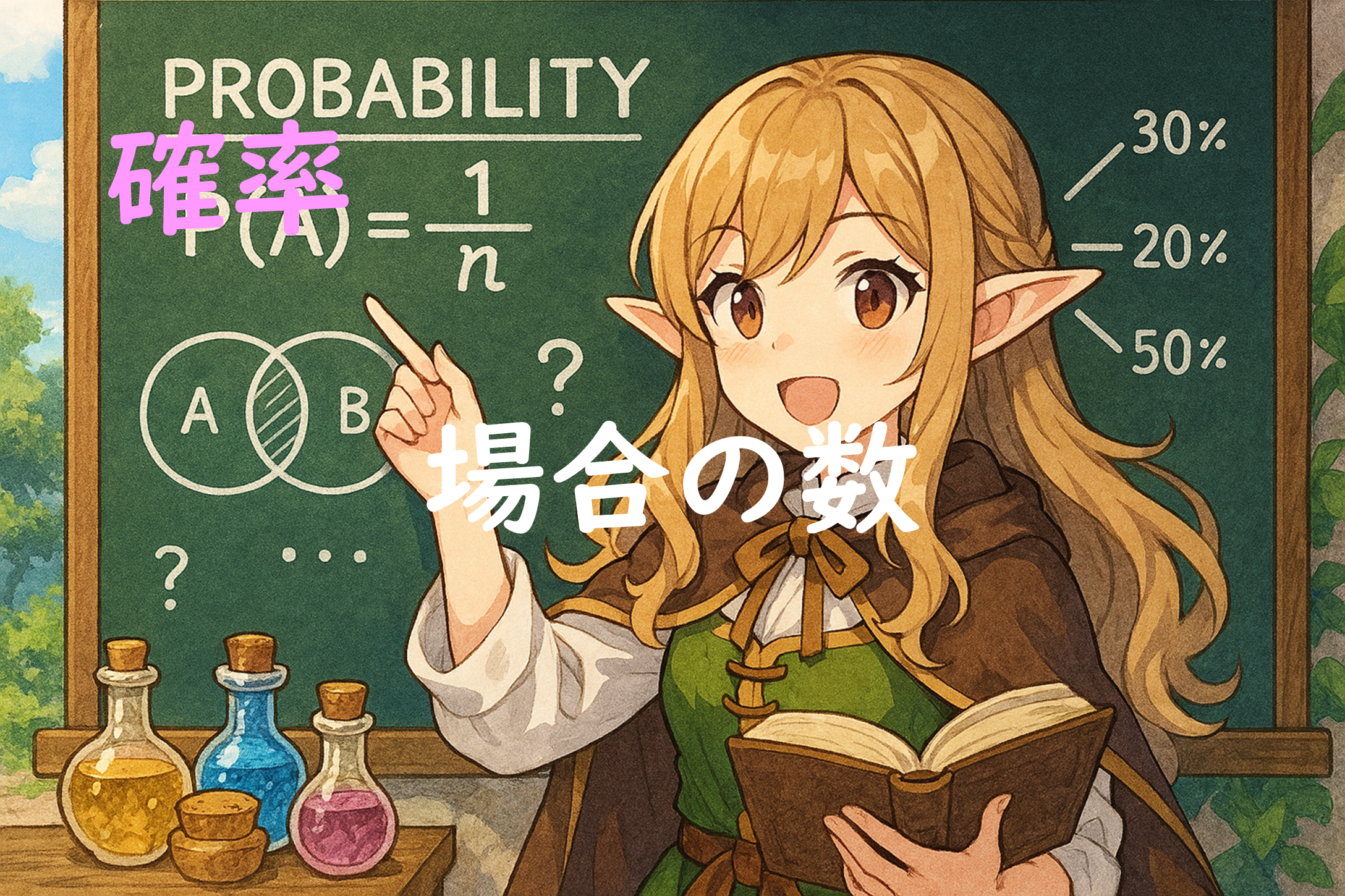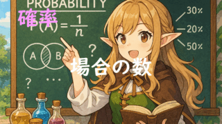ということです。確率を求めたい事象の場合の数を,全事象で割ることで求めることができます。